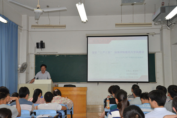 6月24日下午,交通运输工程学院在翡翠湖校区六教101室举行了“落实‘三严三实’,加强学院教风与学风建设”专题党课报告,这也是学院自开展“三严三实”专题教育以来的第二次专题党课,常务副院长张卫华教授为学院全体教师及学生干部讲述了精彩的一课。