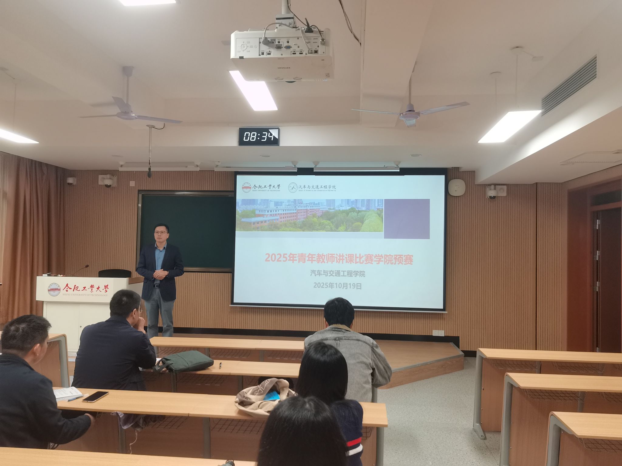 为进一步提升学院青年教师教育教学能力,搭建教学交流平台,汽车与交通工程学院2025年青年教师教学基本功比赛于2025年10月19日上午在屯溪路校区西二203顺利举行。比赛邀请了各系主任、书记以及曾经在教学比赛中获奖的教师担任评委,学院教学副院长白先旭教授主持比赛。