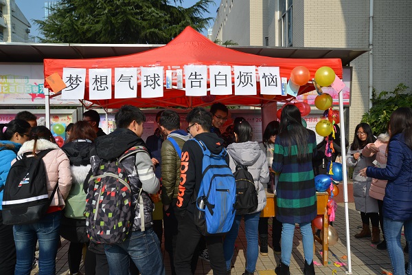 12月15日中午,汽车与交通工程学院在翡翠湖校区一食堂下沉广场开展“梦想气球,告白烦恼”大学生心理健康宣传活动。