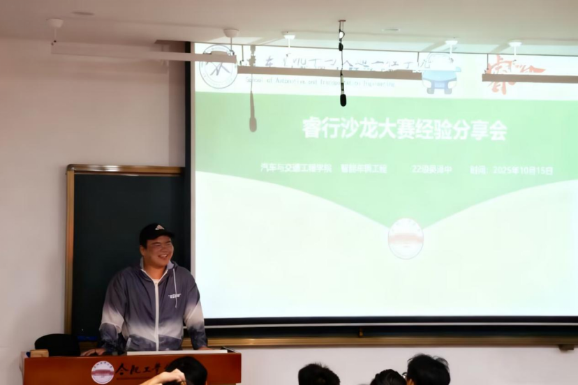 为提升学生科研竞赛与科创能力,搭建优质朋辈互动交流平台,营造积极向上的学习氛围,10 月 15 日,汽车与交通工程学院学生科学技术协会在翡翠湖校区成功举办 “睿行沙龙” 竞赛经验交流分享会。本次活动特别邀请 2022 级章权、吴泽中、王基洲、段雨可四位高年级优秀学生代表分享科研竞赛实战经验、保研推免政策要点及个人成长感悟。