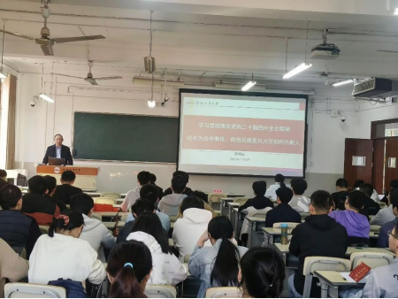 开班仪式结束后,白修山以《学习贯彻落实党的二十届四中全会精神,成长为品学兼优、担当民族复兴大任的时代新人》为主题,从党的二十届四中全会主要精神、努力成长为担当民族复兴大任时代新人、合格的入党积极分子应具备的基本条件等内容为党校班学员讲授党校第一课。他结合行业现状和学院概况,详细讲授了党的二十届四中全会精神主要内容,分析教育科技人才对中国式现代化的战略性、基础性支撑作用,引导广大青年深刻领悟习近平总书记关于教育、科技、人才的重要论述的核心要义。他表示,广大学员要提高政治能力、努力成才,把自己的个人价值同社会价值、国家价值统一起来,在实现国家富强的过程中实现真正的人生价值。