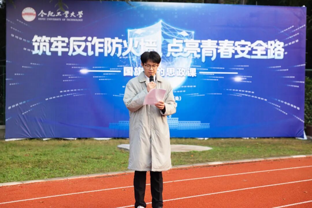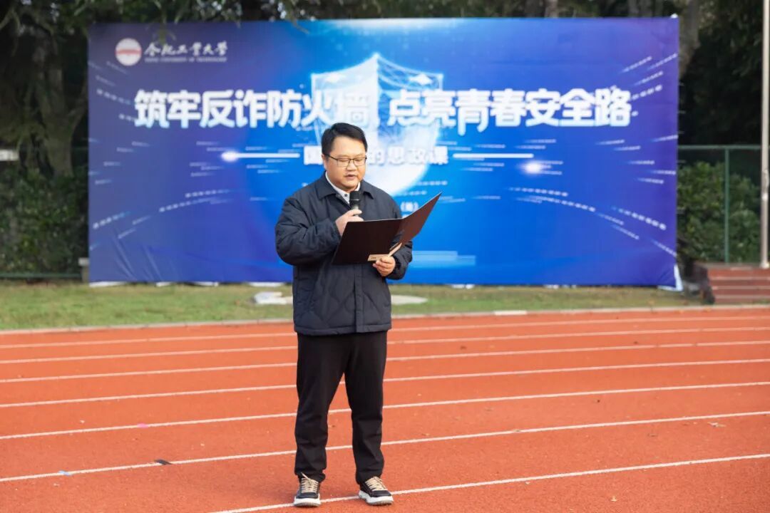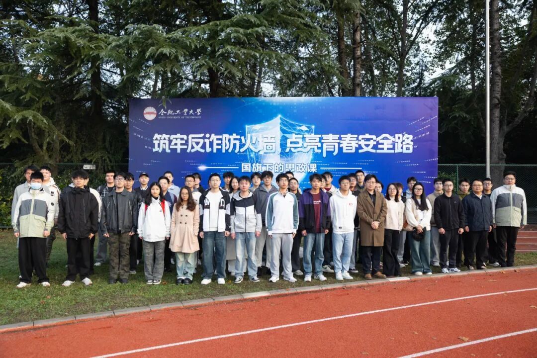 11月10日清晨,汽车与交通工程学院在屯溪路校区举行“筑牢反诈防火墙,点亮青春安全路”升旗仪式暨国旗下的思政课。学院相关负责人、辅导员及全体学生参加了此次活动。