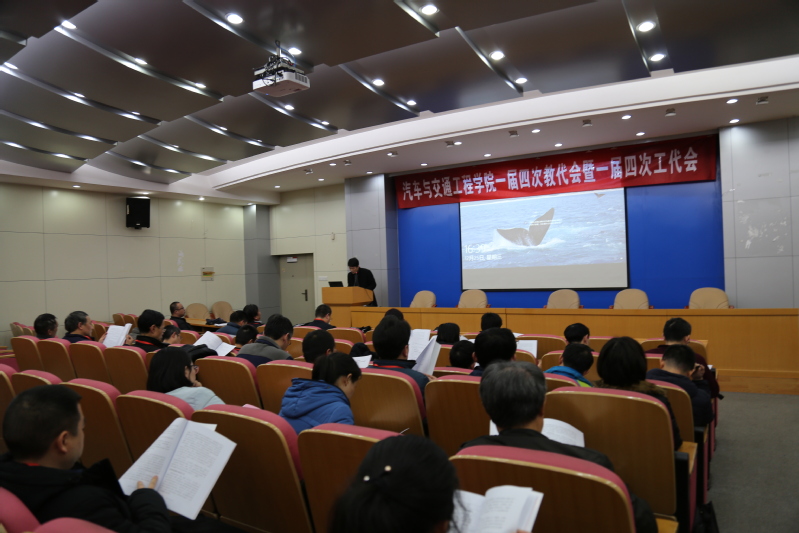 2019年12月25日,汽车与交通工程学院第一届四次教代会暨第一届四次工代会于格物楼214顺利召开。会议由院党委副书记叶兵主持,34位代表出席了会议。