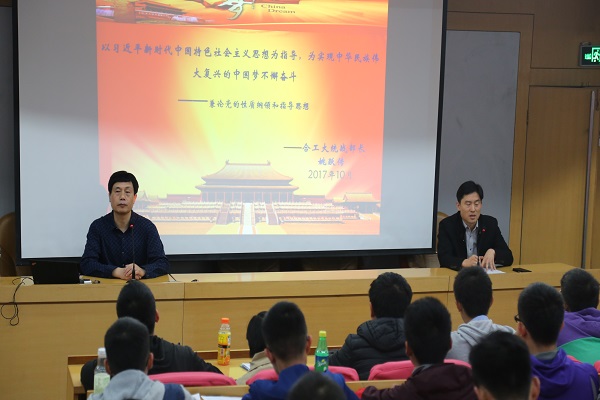 随后,姚跃传老师作了“以习近平新时代中国特色社会主义思想为指导,为实现中华民族的伟大复兴而不懈奋斗”为主题的报告。姚跃传老师结合学习宣传党的十九大精神,引出对新党章的学习和解读,并着重从五个切入点强调了要正确认识党性的几个基本问题,更是形象的以红花和绿叶的关系来类比中国共产党之于中国的重要性,精彩又到位的比喻迎来了一阵阵掌声。同时,姚跃传老师结合我国十八大以来的巨大变革为学员们论述了青年的社会担当和历史使命,通过讲解经典事例使同学们更加深入了解社会主义核心价值观的形成与发展,并引用十九大报告对社会主义核心价值观的最新阐释从国家、社会、个人三个层次向同学们详细讲解二十四字核心价值观的深刻内涵。
