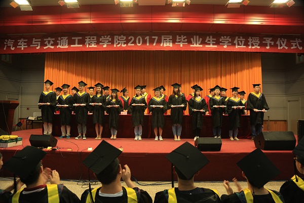 6月22日上午,汽车与交通工程学院2017届本科生毕业典礼暨学位授予仪式于东风报告厅成功举行。校党委常委、总会计师闫平,学院相关领导,教师代表以及全体2017届本科毕业生出席仪式。