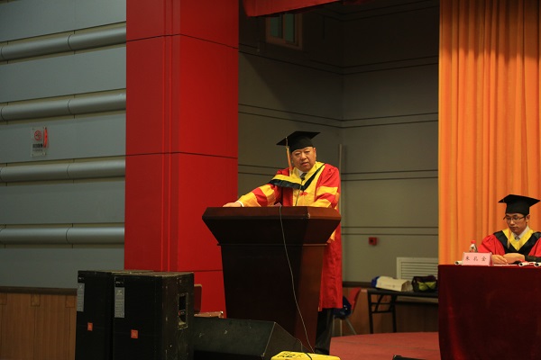 闫平老师代表学校向全体学位获得者表示衷心的祝贺,并指出希望毕业生们能够时刻不忘家国情怀,砥砺前行。不管身在何处都要永葆创新的理念,并且勉励毕业生们要坚持不断的学习,持续完善自身。最后告诫毕业生们要懂得感恩,感恩母校、感恩父母、感恩老师、感恩同学。