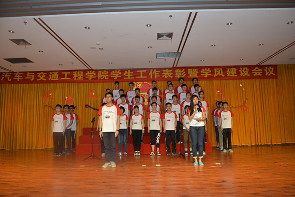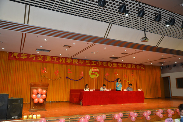 5月18日晚7:00,汽车与交通工程学院于翡翠湖校区图书馆报告厅举行了以“浓情五月,精彩汽交”为主题的学院学生工作表彰暨学风建设会议。院长张代胜老师、院党委书记石琴老师、院党委副书记叶兵老师及院团委副书记董双双老师出席本次表彰大会。