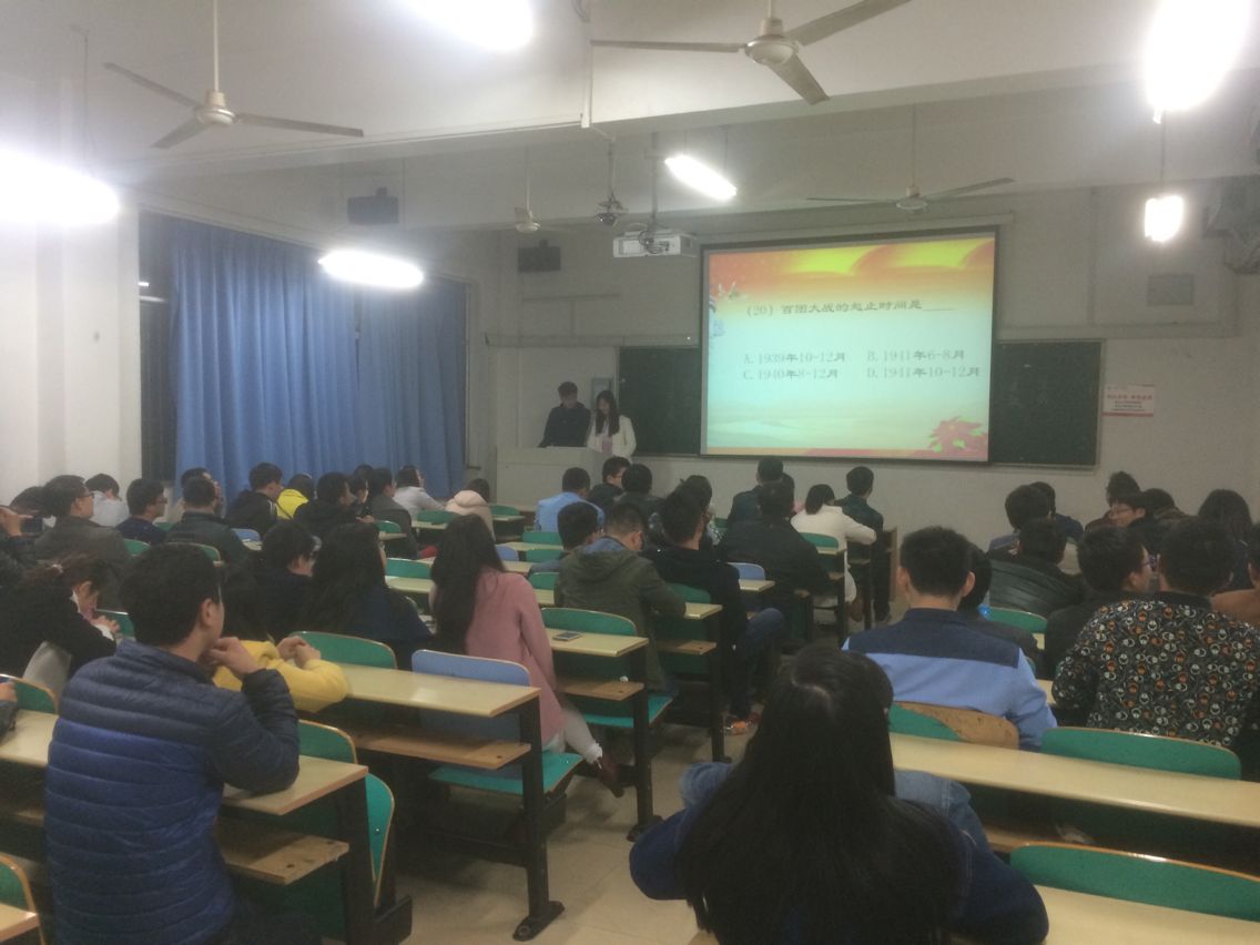 活动共分为四个环节,首先,全体同学共同观看了《我的抗战:胜利了》纪录短片,同学们纷纷被革命先烈的事迹所触动,更为中国取得八年抗日战争的最后胜利感到由衷地喜悦;其次是分小组进行关于抗日战争的知识竞赛和猜词游戏,比赛过程中,每位同学都积极参与,通过游戏不仅让大家更加了解有关抗日战争期间的革命英雄和感人事迹,同时还增进了同学之间的革命友谊;最后是才艺展示环节,张祥和黄思路同学的诗歌朗诵《民族魂》振奋人心,此次活动在郝宇同学铿锵有力的歌声—《保卫黄河》中落下帷幕。