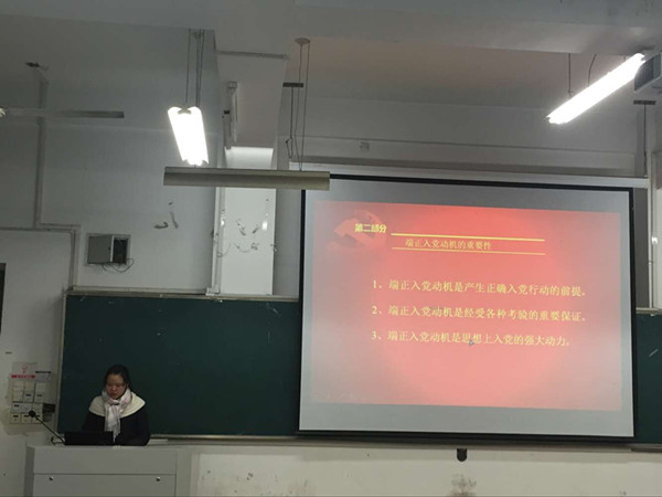 12月21日晚7:00,交通运输工程学院组织第54期大学生入党积极分子于翠四教109室,开展“如何端正入党动机”主题教育讨论活动。院党校班主任董双双老师主持了会议。