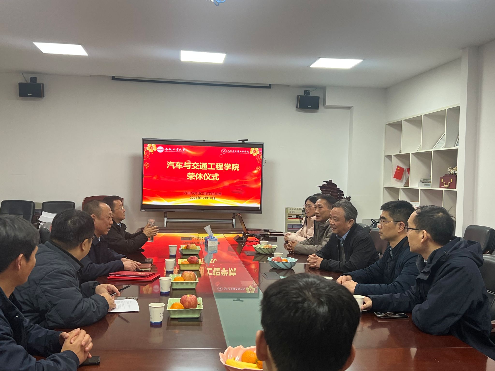2025年12月10日下午,汽车与交通工程学院在格物楼506会议室举行退休教职工荣休仪式。学院党委书记白修山、副院长钱叶剑、夏光、2025年度退休教师代表张代胜教授、青年教师代表及学生代表参加荣休仪式,仪式由学院党委副书记、学院工会主席张金伟主持。